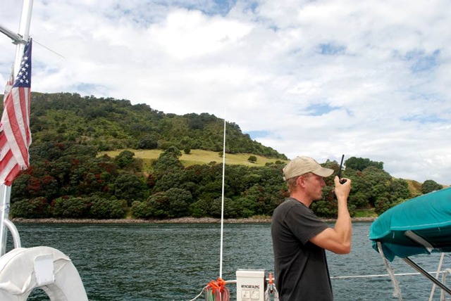 There was quite a bit to see around Cape Colville. The first thing I noticed was the awesome size of Mount Moehau, as revealed between two layers of clouds. Then there were the random, football-stadium-sized rocks and larger islands obstructing our path, and when the sun came out, the green forest ridge of the Coromandel Peninsula. We also had an close encounter with a small whale (Dallas saw its fin, but as usual, I only heard it) and had several dolphins swim around the boat. It is common for tourists to pay good money while here in NZ to go out on charters to try to catch a glimpse of dolphins, so it feels especially fortuitous to see them when we aren’t even trying.