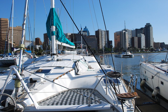 The sun rises just before 5am here, and this morning it’s actually visible through clear skies.  The last several days have been rainy ones.  We weren’t the only boat needing to have some work done and trying to catch the weather window that started Wednesday.  Unfortunately, with all the competing work, our canvas and furler bearing replacements weren’t quite done in time and were delivered in the rain, so we’re still here.  I got the last of it yesterday and today I’ll be trying to get everything back together so I can catch the next weather window to make the passage along the Wild Coast.  Lauren left yesterday for a much deserved trip home for the holidays that has more than a few people pretty excited, so I’ll be single-handing or possibly taking on a local to help with night watches.