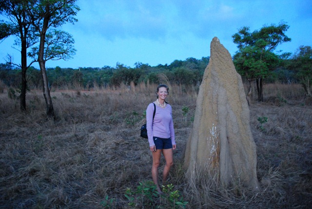 We decided to try hitching a ride to Bamaga (BAM-uh-guh seems to be close), a few miles away, and after watching some free range horses cross the road in front of us, we were picked up by a couple of women in a youth club truck who informed us that the giant piles of dirt we’d seen on an island on the way in and that we were passing in the truck were anthills. We saw one on the way that was about 7 feet high and 3 feet or so wide at the base. The ants aren’t anything special in terms of their size, but the anthills are something to see.