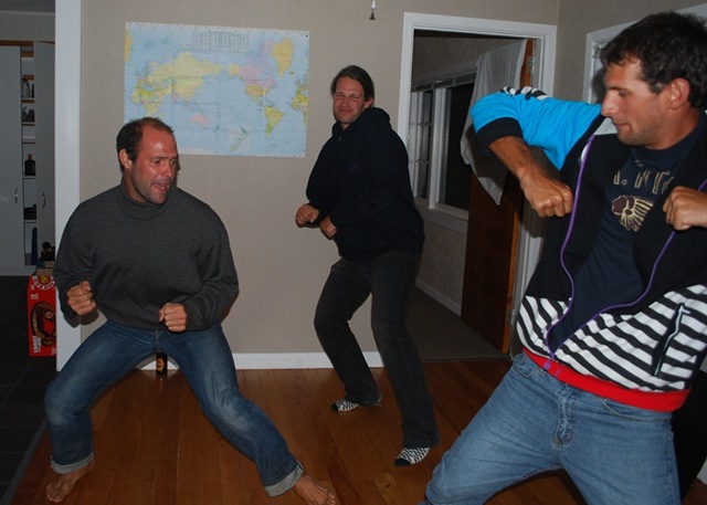 For New Year’s Eve, we headed to Raglan, a small town on the west coast of the North Island that is famous for its left-handed surfing waves. Although we had several boards at our disposal, the winds were a little too strong for the surfing to be good so we only had a quick peek at the famous waves while drving through town. Antoine, who we met in Niue when he was crewing on a sailboat and then saw again in Tonga, is living there for a while and invited us and several other cruisers and friends over to celebrate. Antoine is younger than us, but he’s now the “father” of a house with a great view overlooking the water and rugged countryside. We had a pretty international crew that included people from New Zealand, the US, Germany, Sweden, France, Canada, and the Czech Republic. Leo from Disa and the Avel Mad crew were there as well as Ash, a great Kiwi guy we met in Tonga as he was preparing for his first passage on a Moorings delivery to New Zealand. In addition to making some new friends and having a great New Years, we enjoyed a couple of the most relaxed and enjoyable days we’ve had in a long time, which is saying something for us. The people you meet while travelling really make the trip so much more enjoyable than it would be if you were just checking off the list of local tourist attractions. Most of the others were travellers as well, although Antoine is staying put long enough to work and earn some money. We stopped by the fish & chips place where he’s working to get some ice cream (ice cream is even bigger here than in the states) and remind ourselves what it looks like to work and earn some money. We all got a kick out of it, especially since he was working hard on a busy New Year’s Day with only an hour or so of sleep in a noisy house full of people.
