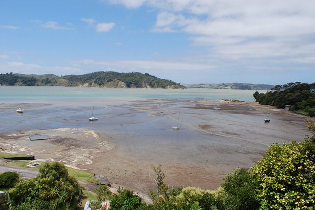 The view from Antoine’s place at low tide (the square at the left is a Kiwi tide/sun pool)